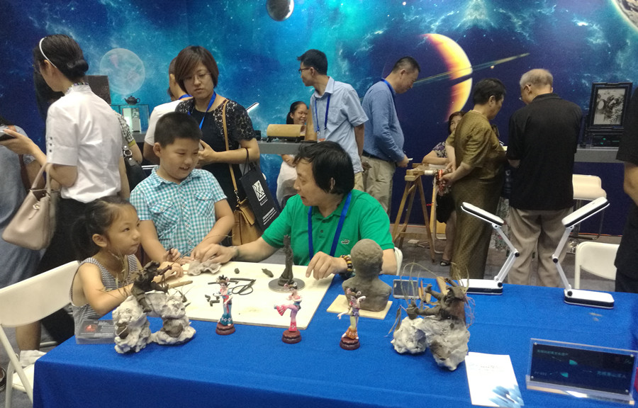 Children learn the art of making Huishan clay figurines at the exhibition on Aug 26-27. [Photo/chinadaily.com.cn] |