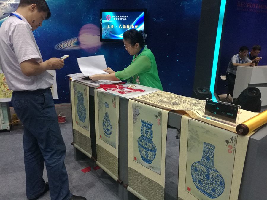 A visitor takes photos of the paper-cutting artworks at the exhibition in Wuxi on Aug 26-27. [Photo/chinadaily.com.cn]