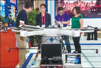 | Customers inquire about drones at a China-Northeast Asia Expo held in Changchun.[Photo provided to ChinaDaily] |