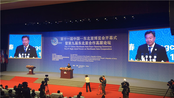 | Jiang Zengwei, chairman of the China Council for the Promotion of International Trade, remarks at the ceremony that the Expo has become an important platform for Northeast Asian countries to promote cooperation in trade and investment. [Photo/chinadaily.com.cn] |