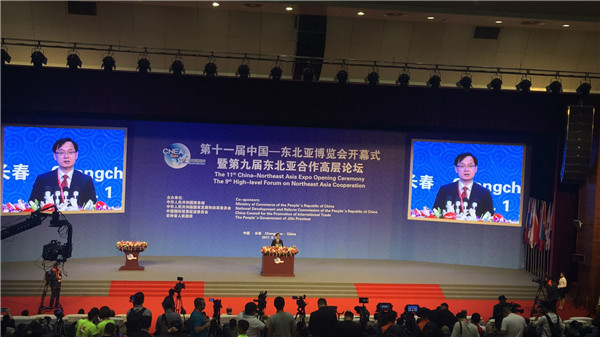 Kang Sung-cheon, deputy minister of South Korea's Ministry of Trade, Industry and Energy, stresses the importance of accelerating economic integration within the Northeast Asia region, which he hopes the Expo will promote. [Photo/chinadaily.com.cn]