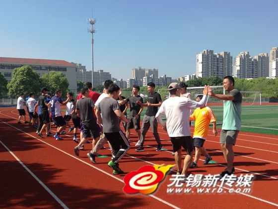 | Wuxi high school teachers take part in a football course on Aug 27. [Photo / wxrb.com] |