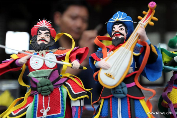 Folk artist Zhang Xu makes dough sculptures during a competition about folk skills and stunts in Zaozhuang, east China's Shandong Province, Sept. 3, 2017. More than 90 folk artists showcased their skills and stunts in the competition here. [Photo/Xinhua]