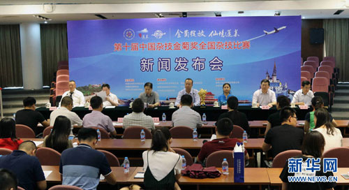 | The organizers of the 10th China Acrobatics Golden Chrysanthemum Awards answer questions during a press conference in Beijing on Sept 4. [Photo/Xinhua] |
