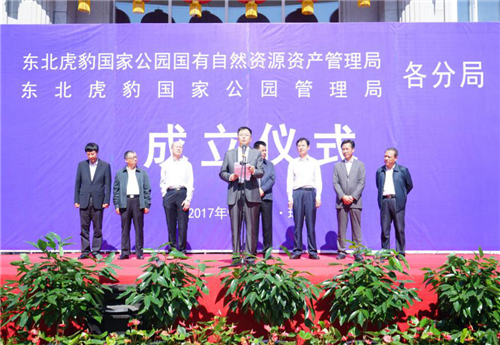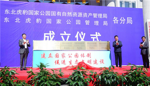 Zhao Li, the director of the NTLNPA, went over the main tasks of the experiment in the tiger and leopard park during the ceremony, including the restoration of the ecological environment in Northeast China's tiger habitat and innovation of a management system.