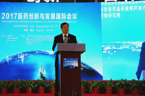 | Sun Xianze, deputy head of the China Food and Drug Administration, delivers a speech at the International Conference on Pharmaceutical Innovation and Development 2017, held in Yantai, Shandong province from Sept 16 to 17. [Photo/news.shm.com.cn] |