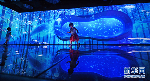 | A little girl at the 2nd World Jellyfish Exhibition [Photo/Xinhua] |