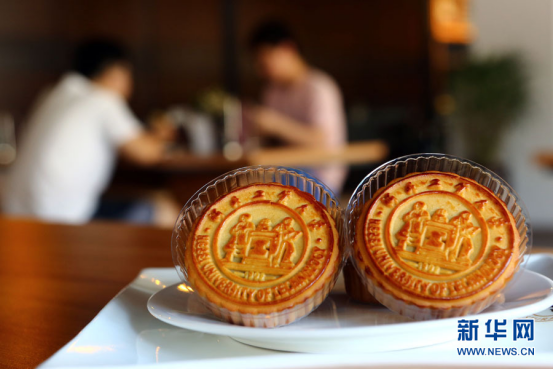 | The mooncakes with the school logo launched by Hebei University of Technology [Photo/Xinhua] |