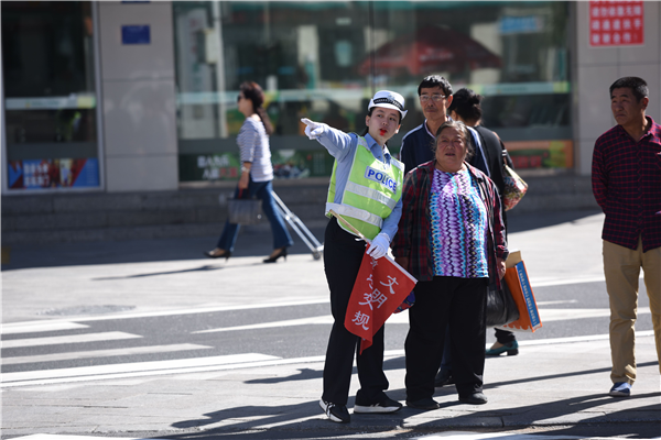 Liang Dongli took this photo of a traffic woman helping a citizen and named it The most beautiful traffic woman. [Photo/cnjiwang.com] |