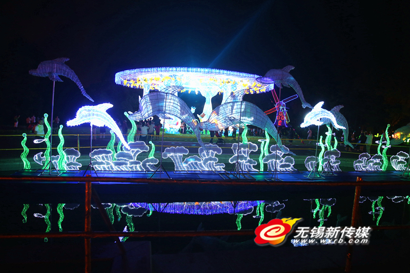 A laser show is staged in the center of a small lake near the light festival entrance, illuminating the garden's night. [Photo / wxrb.com]