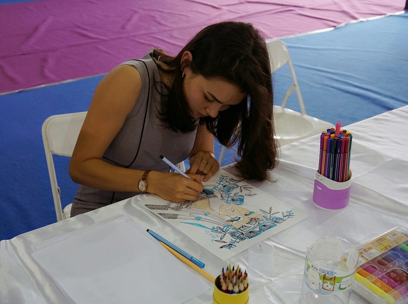 Elisabeth Waldman, a German artist, paints at the 14th China (Wuxi) International Design Expo in Wuxi, East China's Jiangsu province, on Sept 22. More than 10,000 designs from countries including Germany, France, Denmark and Japan are currently on display. [Photo provided to China Daily]