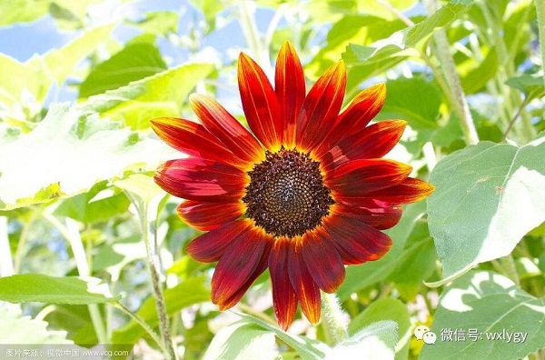 | The red sunflower, named red lemon, will be on show for the first time at this year’s sunflower exhibition at Liyuan Garden in Wuxi. [Photo/provided to chinadaily.com.cn] |