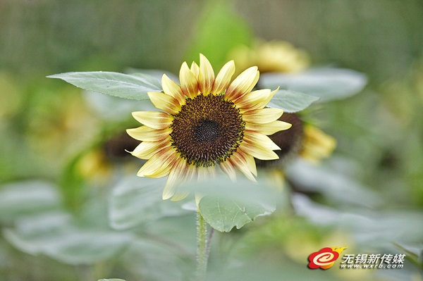 | Black swan, a special variety of sunflower, is characterized by its black stamens. Several black swans will be on display at Liyuan Garden’s sunflower show this month. [Photo/provided to chinadaily.com.cn] |