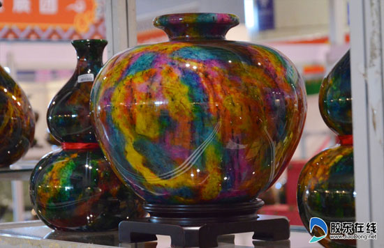 Visitors can get a close look at the colorful porcelain on display during the 2017 Yantai Folk Arts and Crafts Expo. [Photo/ jiaodong.net]