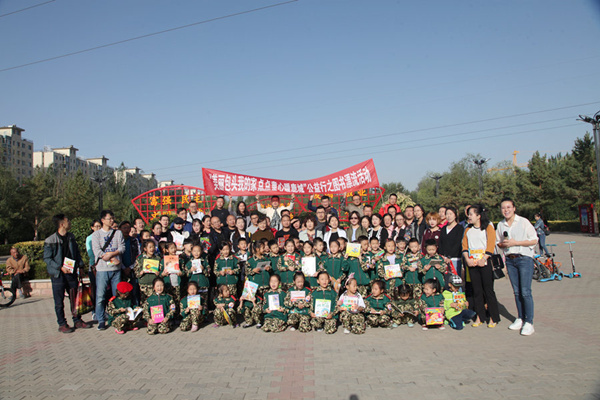 Participants pose for a group photo in Jinlin Park of Baotou, Sept 23. [Photo/wenming.cn]