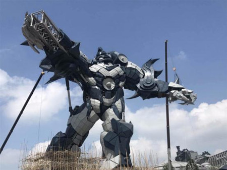 | A 53-meter transformer-style statue stands in Shuanglong Science Fiction Valley in Guiyang, capital of Guizhou province. [Photo provided to chinadaily.com.cn] |