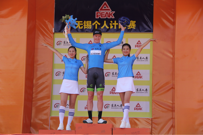 Israel Cycling Academy's Jason Lowndes grabs the Best Youth Rider Award in the prologue of the Tour of Taihu Lake 2017. [Photo/chinadaily]