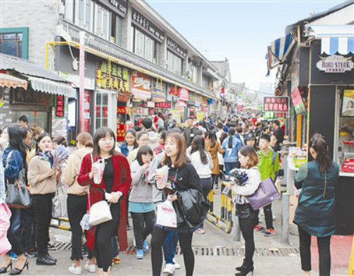 | Tourists flood Fuya Pedestrian Street in Nanyang during "Golden Week". [Photo by Wu Qiushui/Nandu Morning Post] |