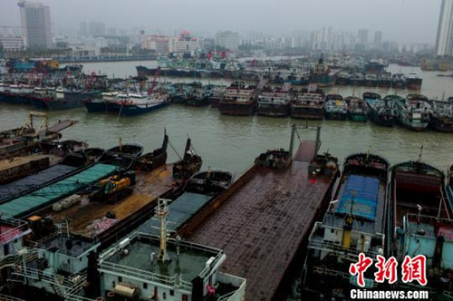 | As Typhoon Khanun heads south, fishing boats are advised to take shelter in port. [Photo/Chinanews.com] |