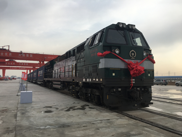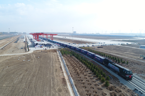 The first Sino-Europe freight train pulled away with 42 cars from Changchun International Port, Changchun New Area on Oct 13, symbolizing the port's opening.