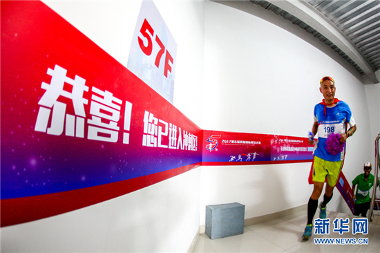 | A competitor arrives at the 57th floor. [Photo/Xinhua] |