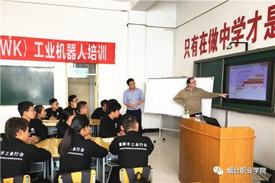 | A German expert gives a lecture to students enrolled in the cooperative educational program in Yantai Vocational College on Oct 15. [Photo/WeChat account: ytvc_wx] |