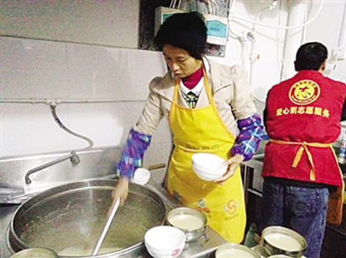 The porridge station on Zhangheng East Road was set up in June 2016 by retiree Li Rongjuan, who has thrown herself into the noble cause of making sure some of the city's forgotten workers have a good start to the day.