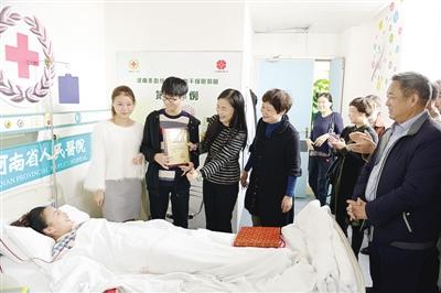 This is the 6th marrow donation case conducted in Fangcheng and the 33rd in Nanyang. Representatives from the Red Cross Society of Nanyang and Henan Province came to the hospital to visit Chen and offer her a gift of appreciation.