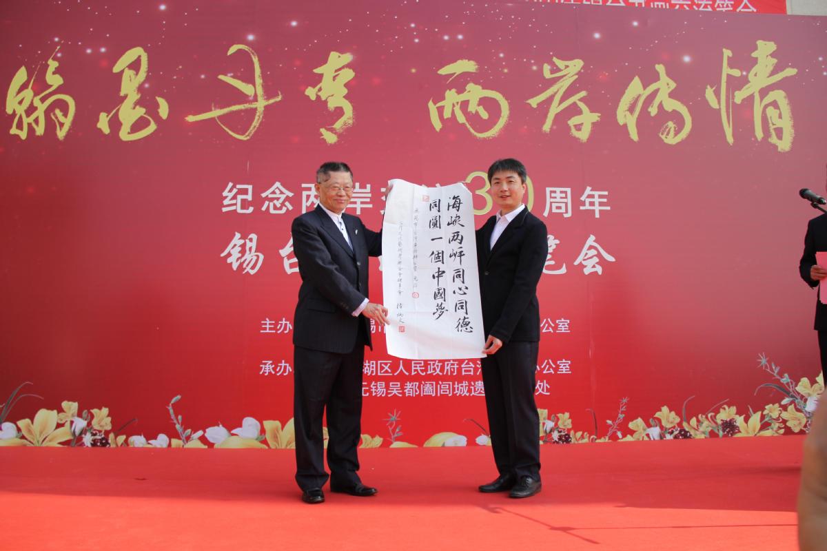 The calligraphy work expresses the willingness of reunification with the mainland from people in Taiwan. [Photo /China Daily]