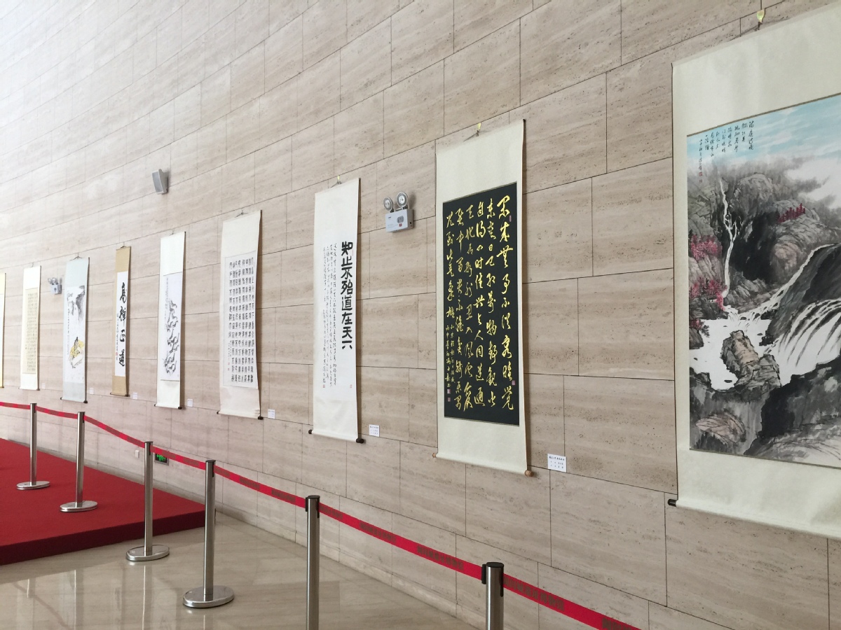 Wuxi and Taiwan artists exhibit their works in the center hall of Helyu City Relics Museum on Oct 28 in Wuxi, Jiangsu province. [Photo/China Daily]