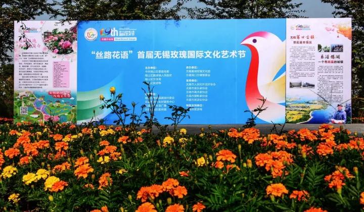 | A poster promotes the upcoming Wuxi Rose International Culture and Arts Festival at Ehu Rose Cultural Park in Wuxi, Jiangsu province. [Photo provided to China Daily] |