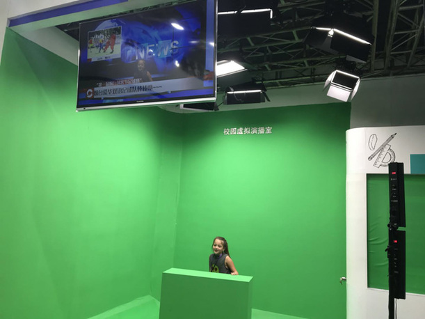 A girl experiences an interactive virtual studio during the Yantai First Campus Makers Day. [Photo/jiaodong.net]