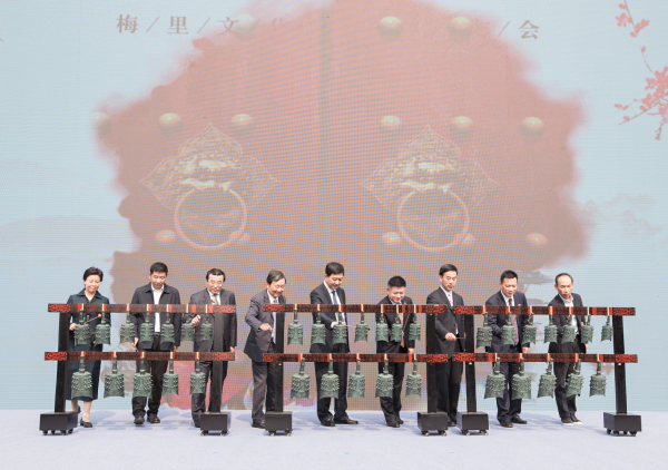 | The opening ceremony for the establishment of Meili Cultural Town held in Meicun town of Wuxi on Nov 3. Wuxi mayor Wang Quan (C) attended the event. [Photo/rmlt.com.cn] |