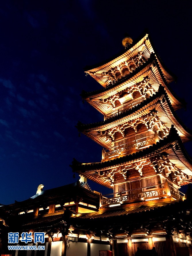 The light show enriches the night scene in Nianhua Bay. [Photo/news.cn]