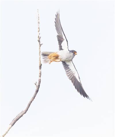 A kestrel soars in the hunt for its prey. [Photo/Zhanjiang Daily]