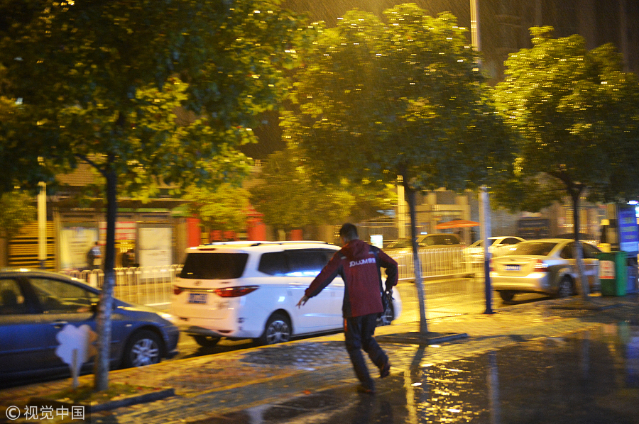 | Mai Jiming leaves home in rain at 6:40 am in Guiyang, capital of Southwest China's Guizhou province, Nov 11, 2017. [Photo/VCG] |