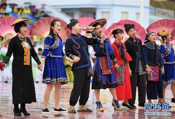 Folk songs are a big part of the celebrations of Guangxi Huanjiang Maonan autonomous county's anniversary on Nov 18.[Photo by Zhou Hua/www.news.cn]