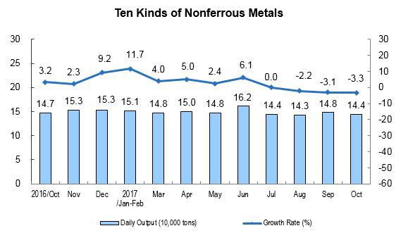In view of three sectors, the value added of mining and quarrying decreased 1.3 percent in October, that of manufacturing increased 6.7 percent, and that of production and distribution of electricity, heating power, gas and water was up by 9.2 percent, year-on-year.