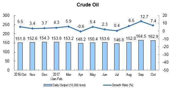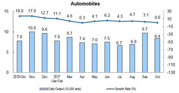 The month-on-month growth rate of the total value added of the industrial enterprises above designated size from October 2016 to September 2017 was revised according to the results of automatic revision of seasonal adjustment model. The results and data in October 2017 are as follows: