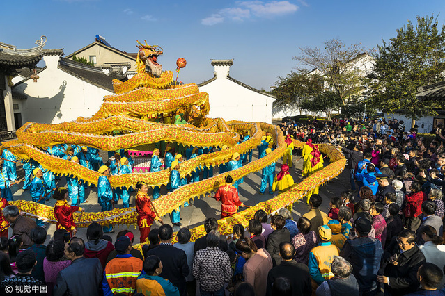 Yuqi dragon dance requires performers to raise and lower the 200-meter dragon puppet to make it "dance". [Photo/VCG]