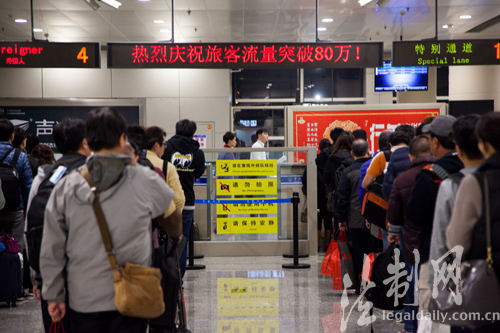 Passengers wait in line to pass the Wuxi Frontier Inspection Station in the airport. [Photo/legaldaily.com.cn]