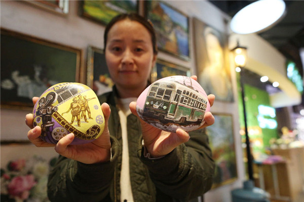 Zhao, 33, a graduate of Changchun University with major in oil painting, found cobblestone painting a niche market three years ago as few people paint on cobblestones in northeastern China.