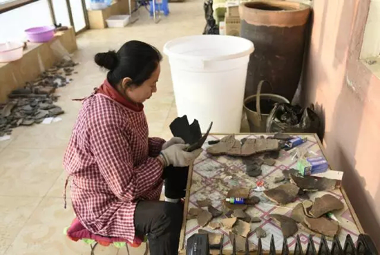 | An archaeologist repairs unearthed artifacts of the Dongtuanshan relics. [Photo provided to ejilin.gov.cn] |