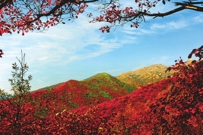 Red Leaf Scenic Area in Tongbai county, Nanyang, in early winter. [Photo/Henan Daily] |