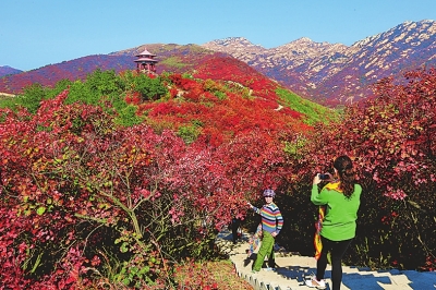 Visitors enjoy the seasonal beauty at Red Leaf Scenic Area in Tongbai county. [Photo/Henan Daily] |
