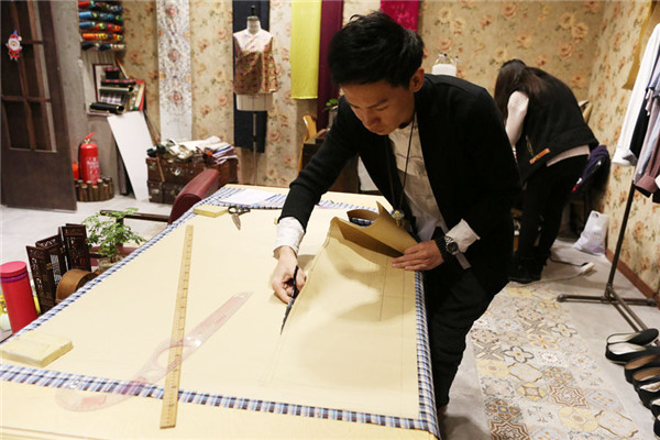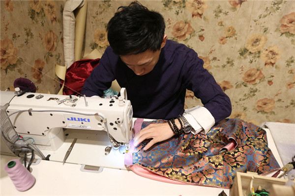 Zhang Haichao makes tailor-made qipao for a customer in Changchun, Northeast China's Jilin province, Dec 13, 2017. [Photo/IC]