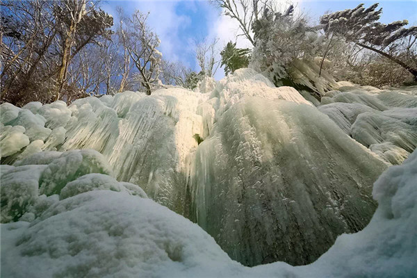In Northeast China's Jilin province, the 2051-meter-high Wangtiane Mountain provides a unique landscape of white snow, soft frosted trees and icefalls for winter tourists and photographers. Tourists can enjoy the marvelous natural scenery in a white fairyland for the whole winter. [Photo by Ding Lianguofor chinadaily.com.cn]