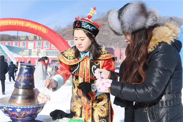 Staff members prepare hotpots for tourists at the opening ceremony of an ice and snow festival held in Siping city, Northeast China's Jilin province, Dec 27, 2017.[Photo/Xinhua] |