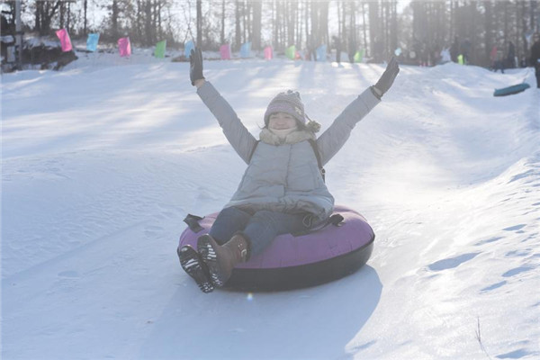 A tourist tries a snow slide at a snow resort in Siping city, Northeast China's Jilin province, Dec 27, 2017.[Photo/Xinhua] |