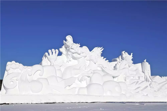 The main sculpture shows China's image with a huge dragon and the Great Wall. [Photo provided to ejilin.gov.cn] |